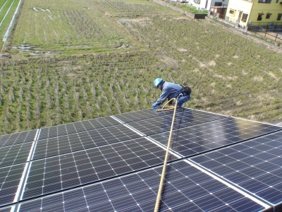 ✨高圧洗浄清掃を行いパネル周り、パネル下、雨樋を